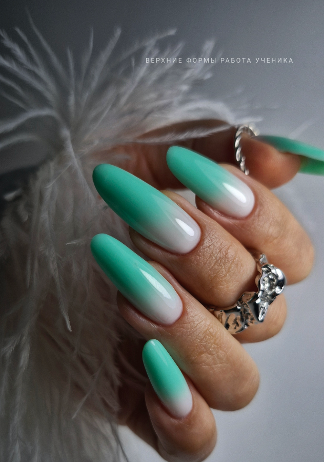 Второй день миндаль - выкладной френч, рисованный френч, аквариумный дизайн , витражные гели, текстуры на выбор.