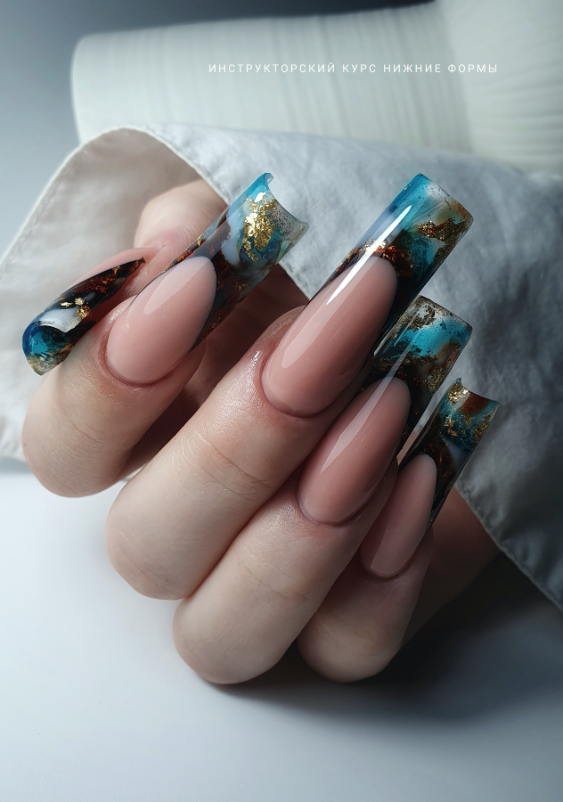 ● Аквариумный дизайн, использование декоров, блёстковых дизайнов, рисованный френч, обратный френч